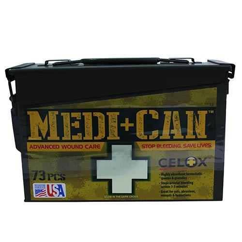 The Be Smart Get Prepared MEDI+CAN First Aid-Advanced Wound Care Kit has 73-Pieces to stop bleeding fast and save lives. The airtight, heavy duty Utility Can is organized and easy to use. The pre-packed treatments make it easy to: Clean, Treat, Apply Advanced Wound Care including CELOX, and to Protect you in the elements.