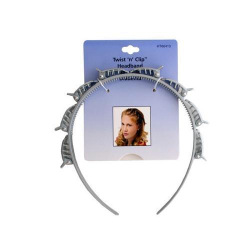 Great for all hair types, this Twist 'n' Clip Headband instantly creates unique hairstyles. Create twisted and braided styles using the 8 attached clips, so you won't need help styling your hair. Works on almost any length of hair! Pretty design features a plastic headband adorned with oval or rectangular clips. Headband measures approximately 5.5" x 5.5". Includes directions. Comes in assorted colors and styles. Comes packaged to a hanging panel.