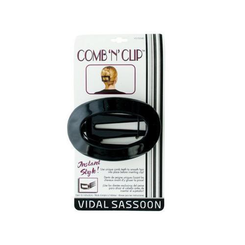 Case of: 24Colors: blackMaterials: plasticInstantly create fashionable hairstyles with this versatile Vidal Sassoon Comb 'N' Clip Hair Clip. Use the unique comb teeth to smooth hair into place before inserting the clip. Includes directions for a French twist, classic up-do and messy up-do. Measures approximately 3.5" x 2.25" x 1"....