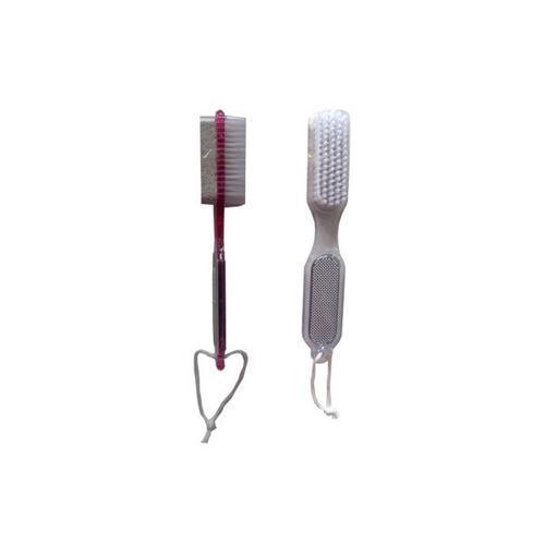 Case of: 24Colors: transparent, white, blueMaterials: metal, plastic, nylon, rockPerfect for smoothing feet, this 4-in-one pedicure brush provides all the tools needed to give a professional-quality pedicure at home. Includes nail file, callus remover, pumice stone and brush. Measures approximately 8.75" long. Comes shrink wrapped with a hang tag.